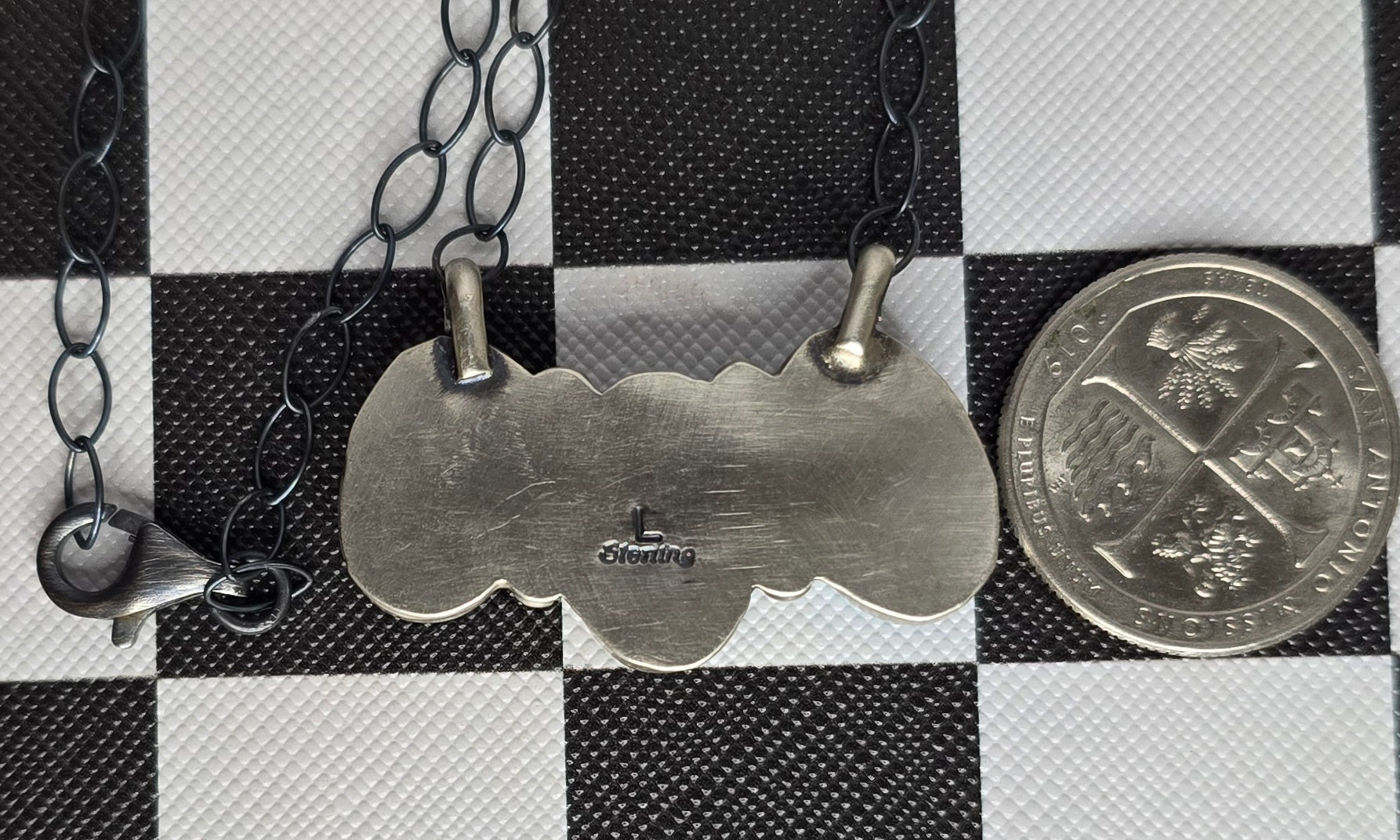 Native made, blue ridge turquoise necklace. 19 inch max chain. Made by Lorenzo Juan.