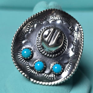 Native Made, Kingman Turquoise & Sterling Cowboy Ring.