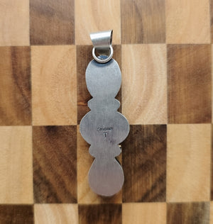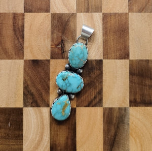 Native made, emerald valley turquoise and sterling pendant. Signed T (Tricia Smith). Stamped sterling.