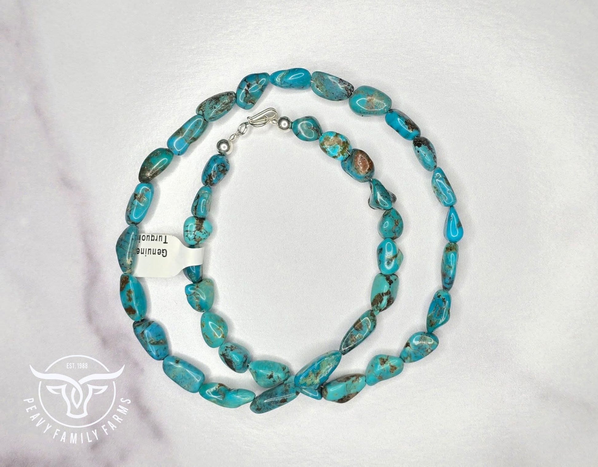 Genuine turquoise and sterling necklace. Length: 20 inches.