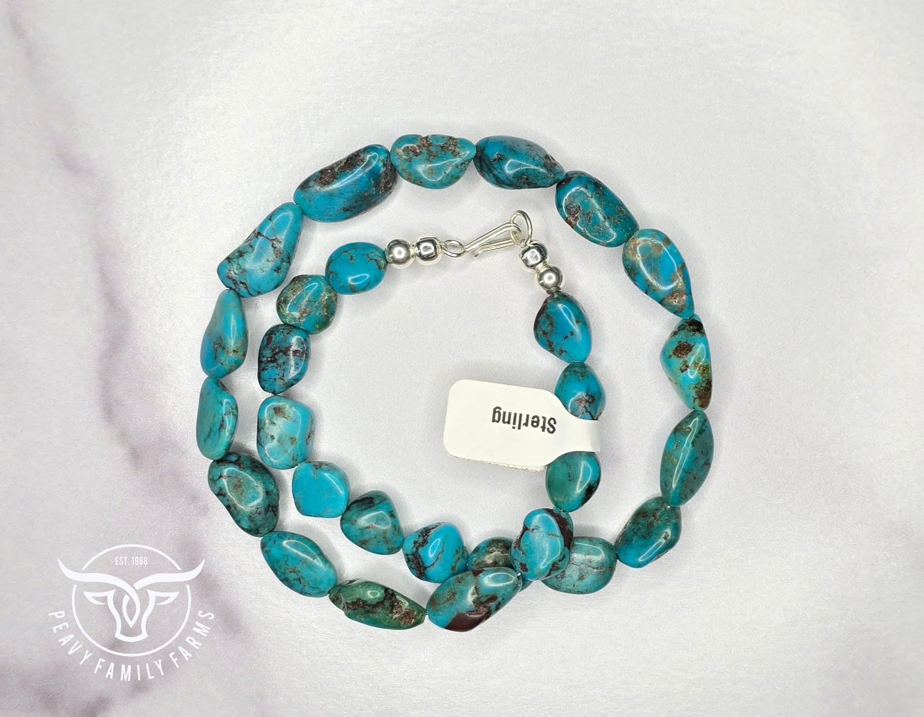 Genuine turquoise and sterling necklace. Length: 16 inches.