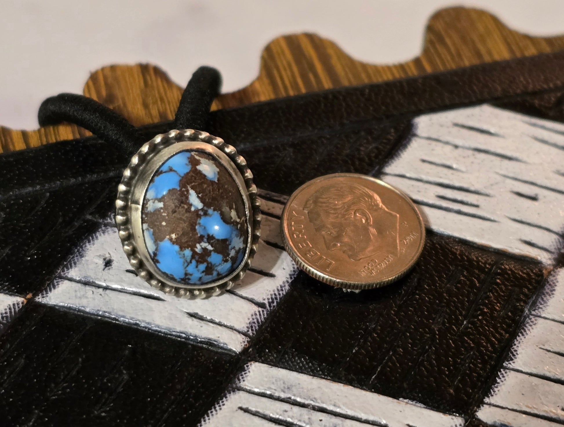 Native made, golden hills turquoise and sterling hair tie. Signed and stamped by the artist. Option A.