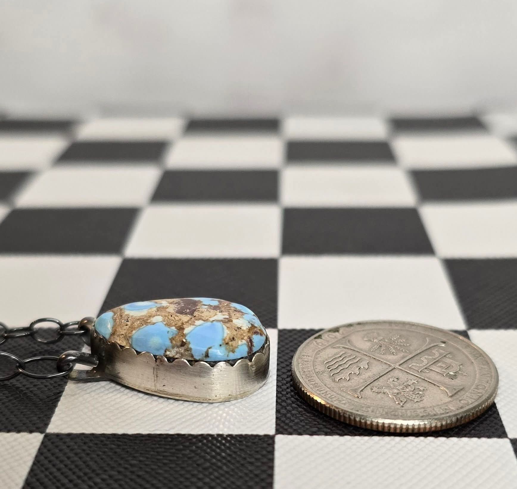 Native made, golden hills turquoise necklace. 18.5 inches max chain. Made by Tricia Smith.