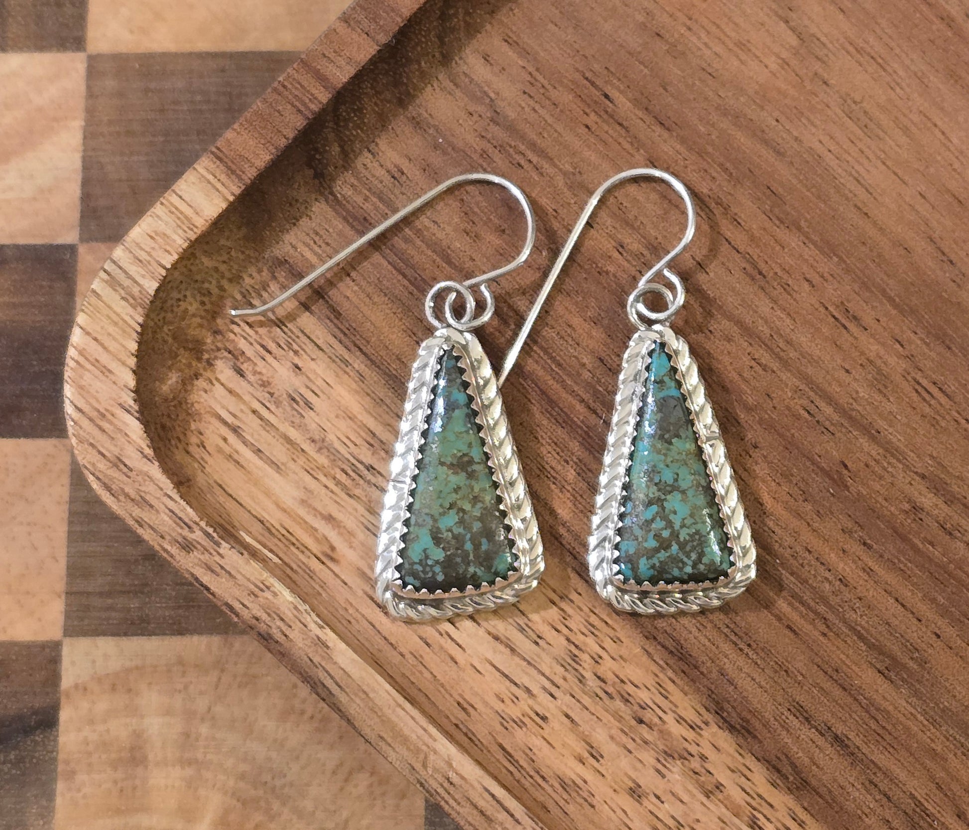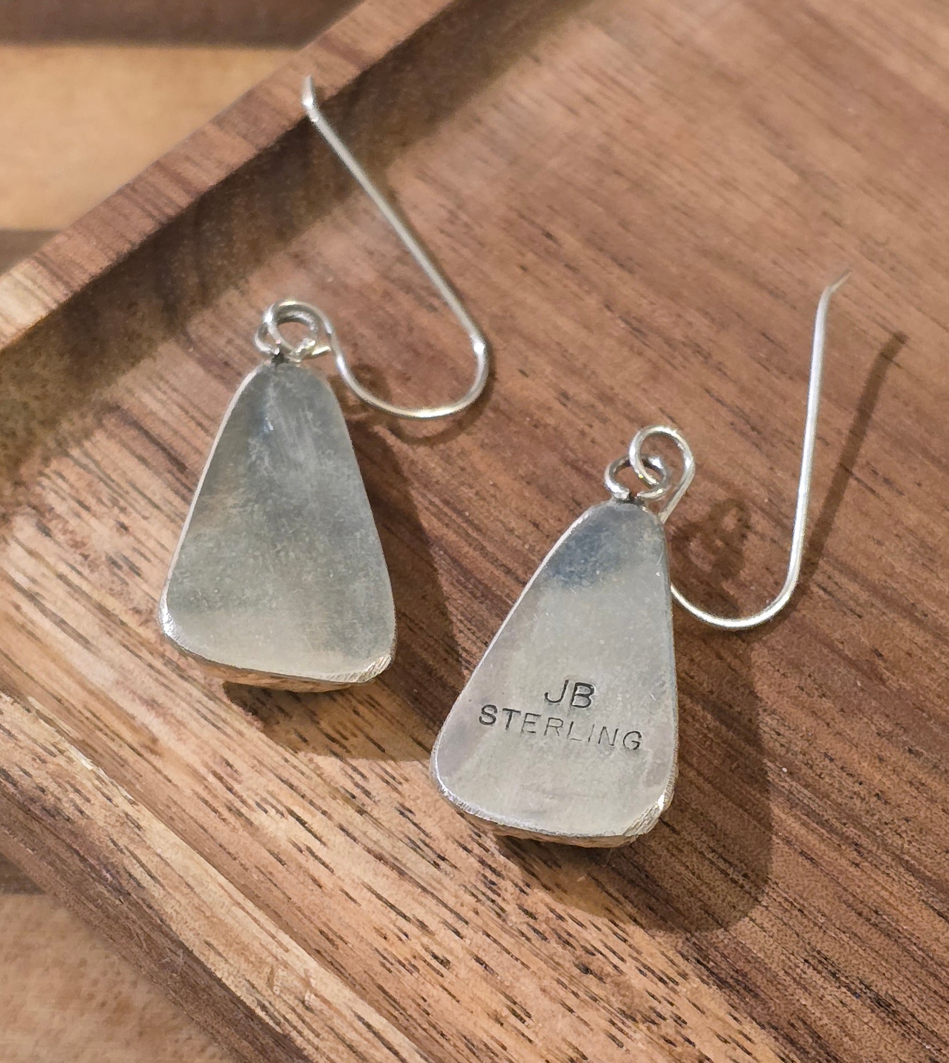 Native made, kingman turquoise and sterling earrings. Signed by Jennifer Begay.
