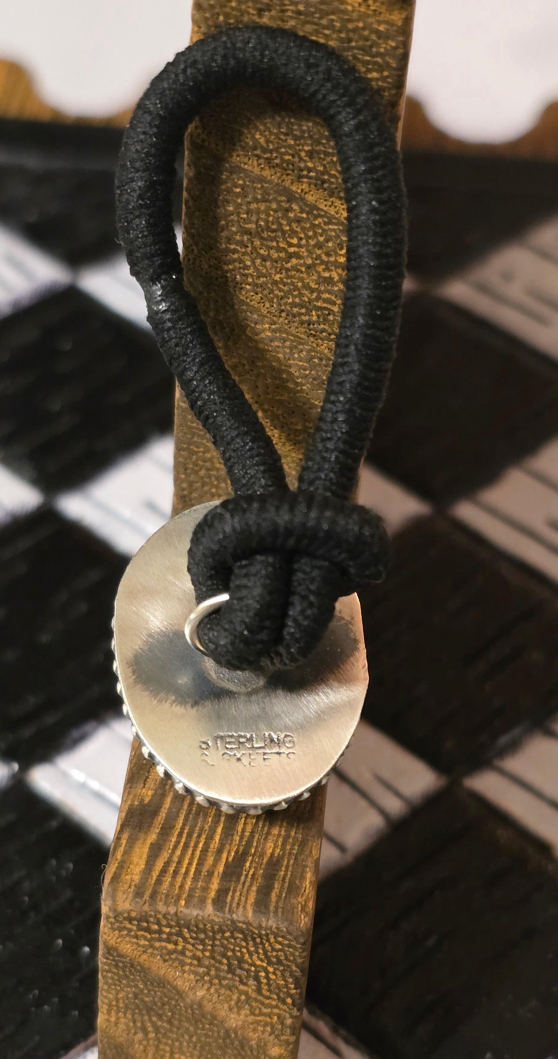 Native made, kingman turquoise and sterling hair tie. Signed and stamped by the artist.