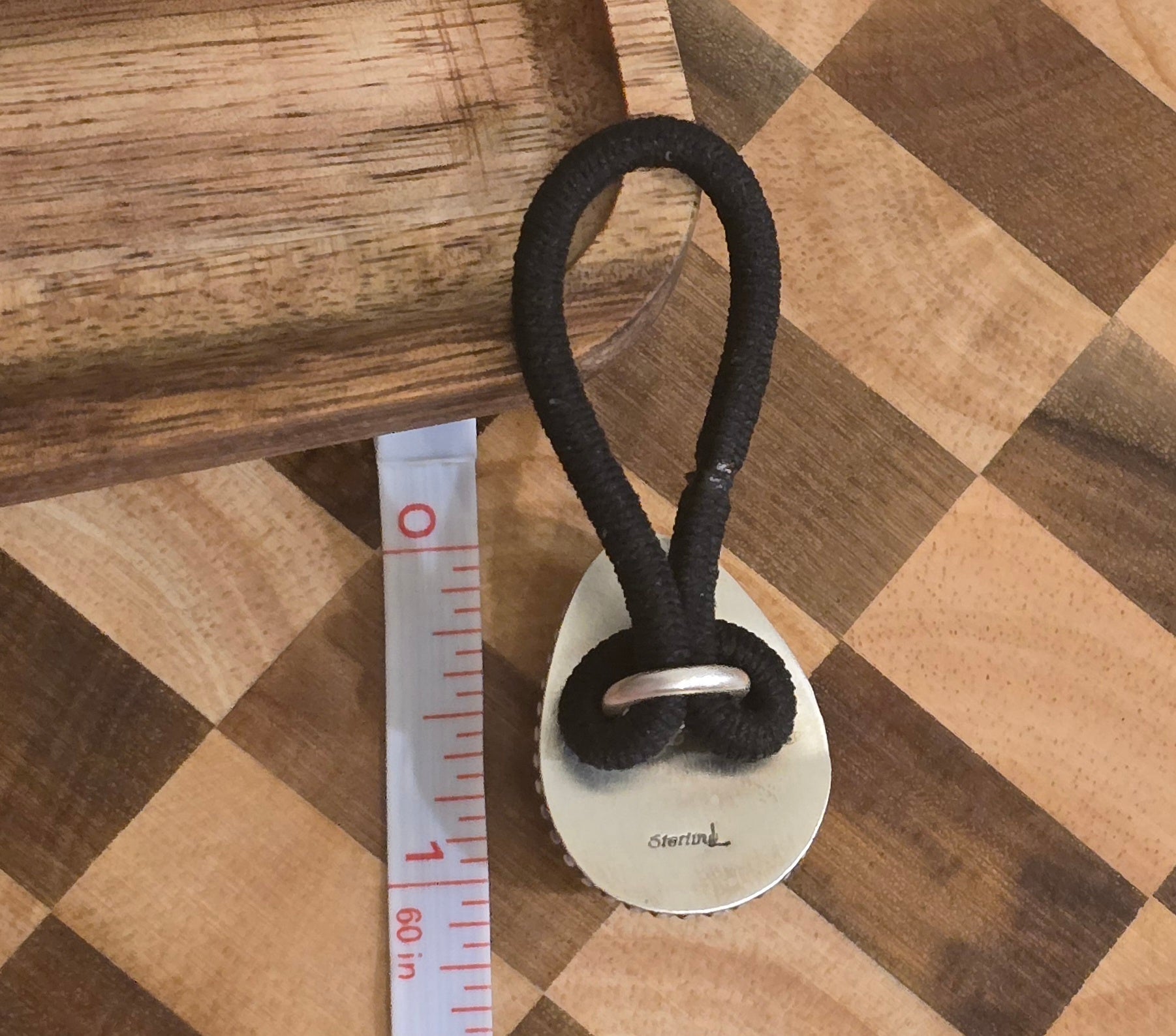 Native made, kingman turquoise and sterling hair tie. Signed and stamped by the artist.