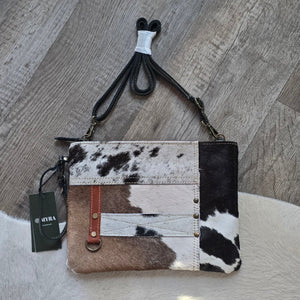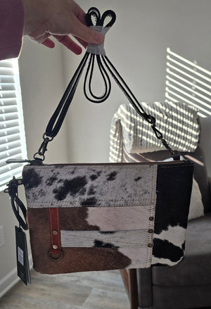 Genuine leather and hide crossbody purse