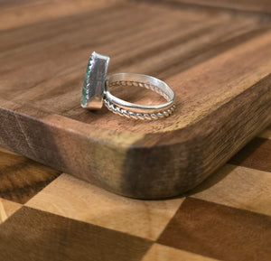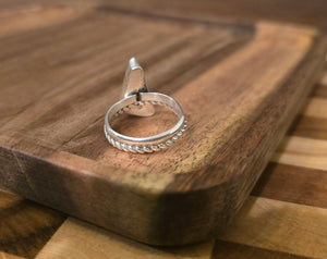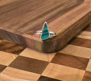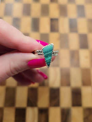 Native made, Malachite and sterling ring. Size 7. Stamped sterling (band covers it and possibly the signature).
