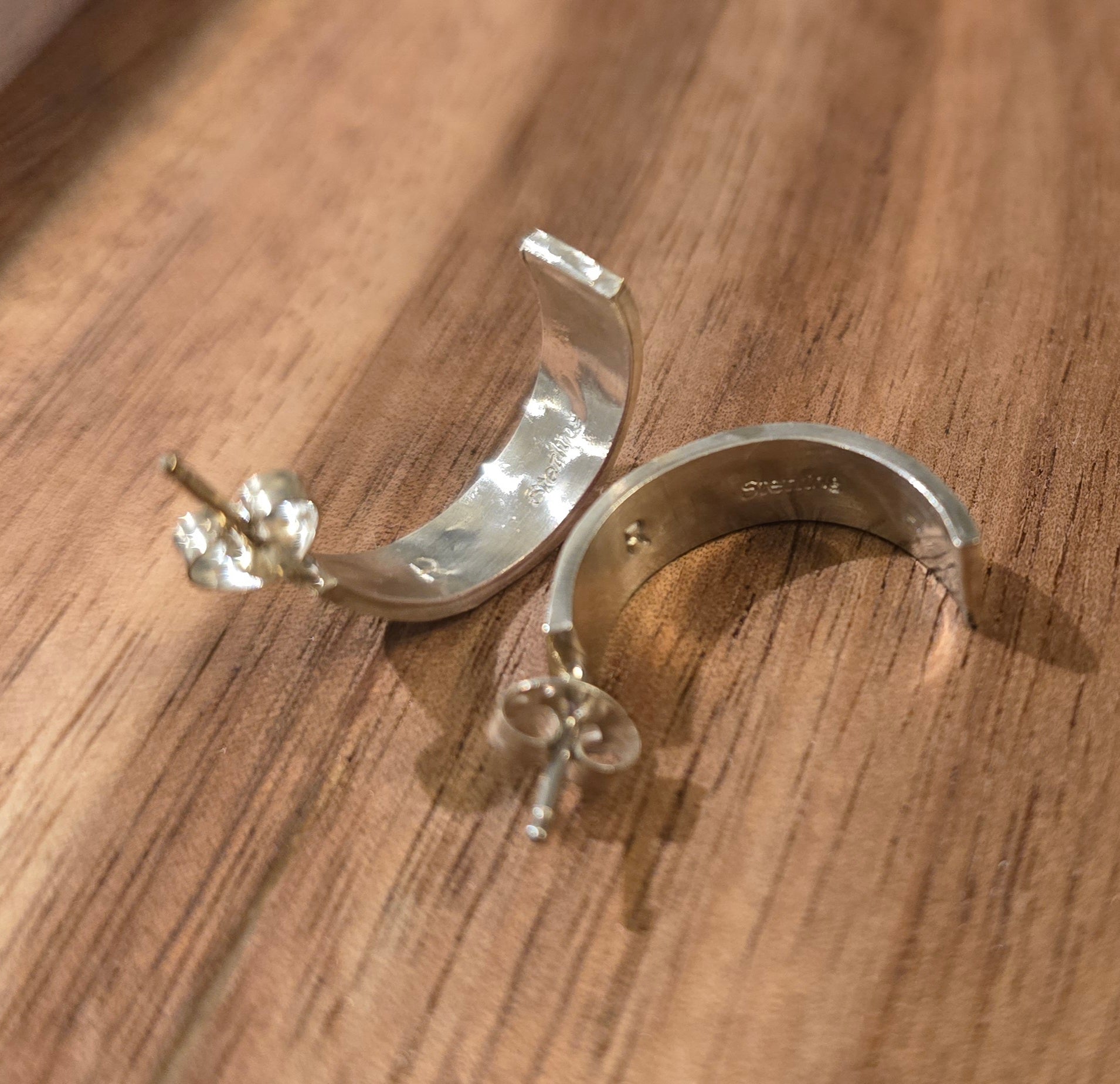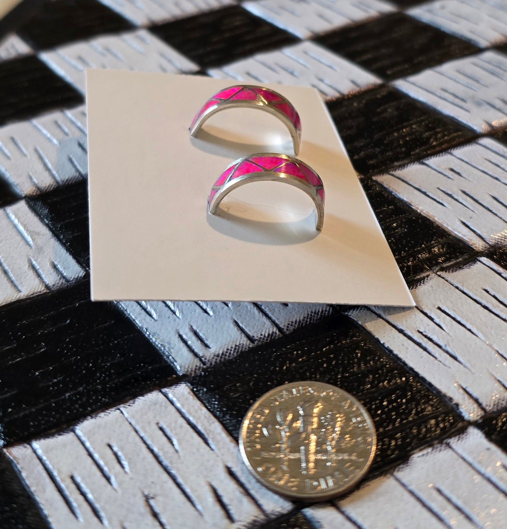 Native made, man made hot pink opal and sterling earrings. Signed and stamped.