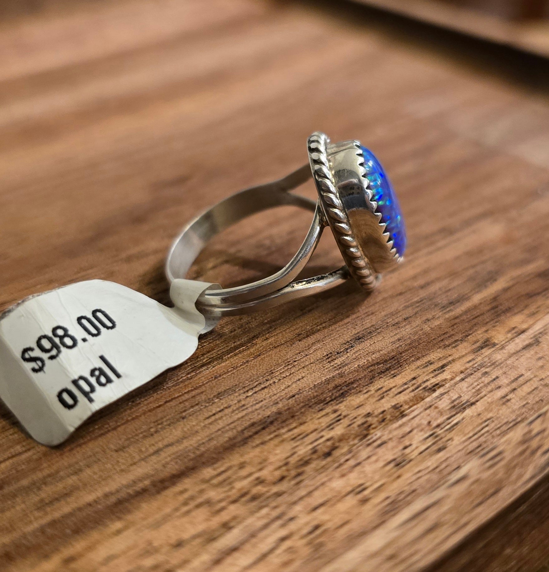 Native made, man made lilac opal and sterling. Signed RRT. Size 8.