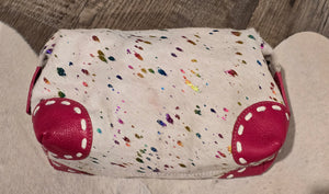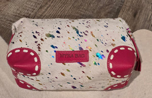 Genuine leather and dyed hide. 10 inch by 4 inch.