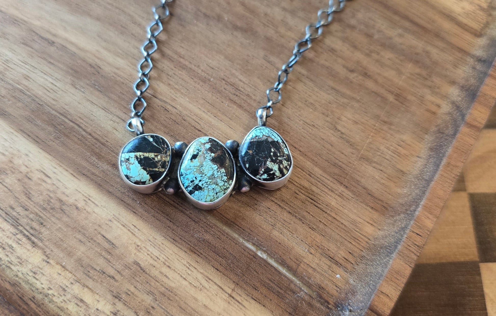 Native Made Black Jack and Sterling Necklace. The pendant hangs on an 18-inch chain with lobster closure. Stamped sterling. Signed by LeTricia Largo.