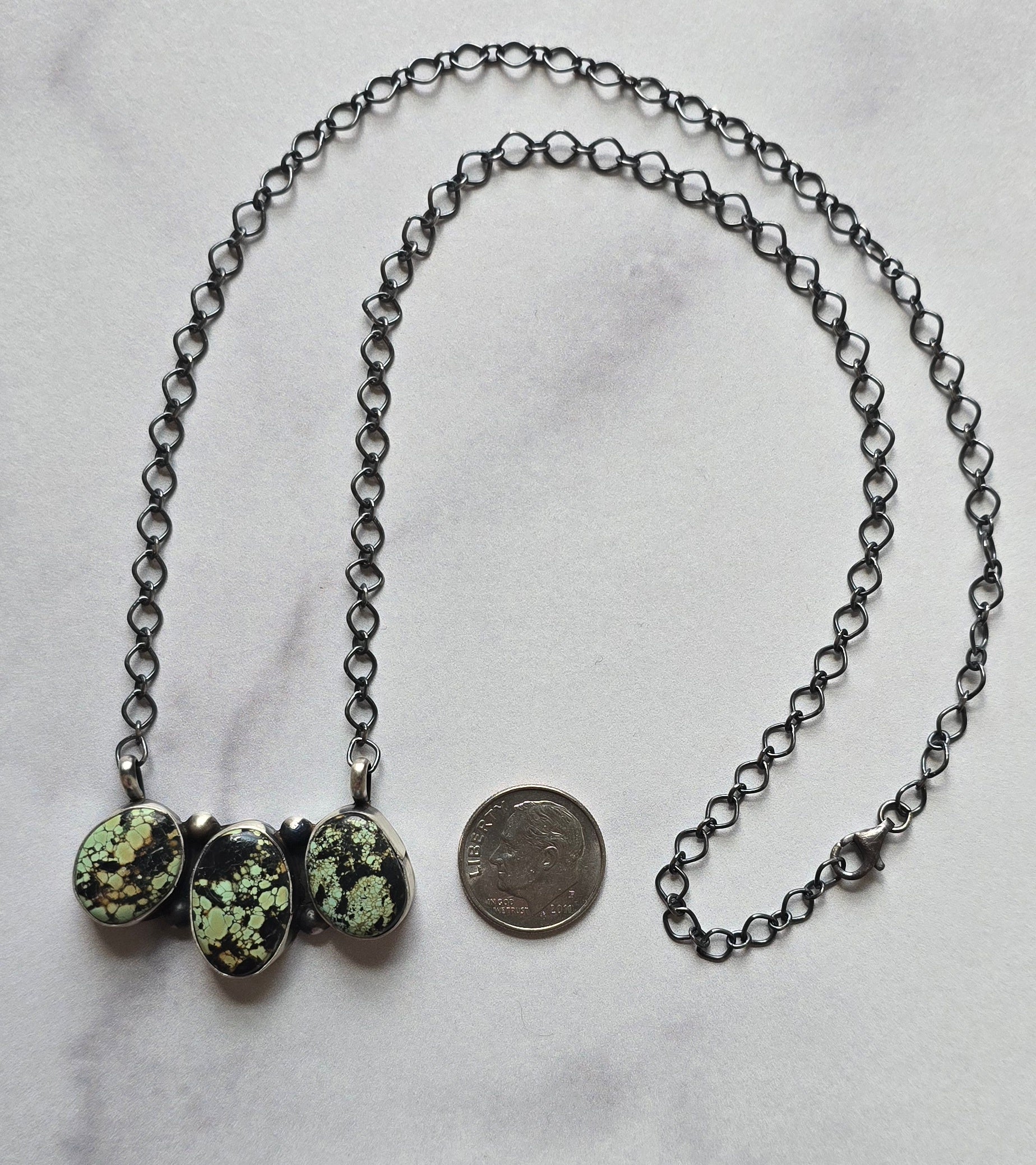 Native Made Black Jack and Sterling Necklace. The pendant hangs on an 18-inch chain with lobster closure. Stamped sterling. Signed by LeTricia Largo.
