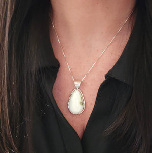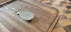 Native made, palomino and sterling pendant. Signed by Chez Clayton Tsosie. Includes 18 inch sterling chain. Can sit on at least a 6mm pearl.