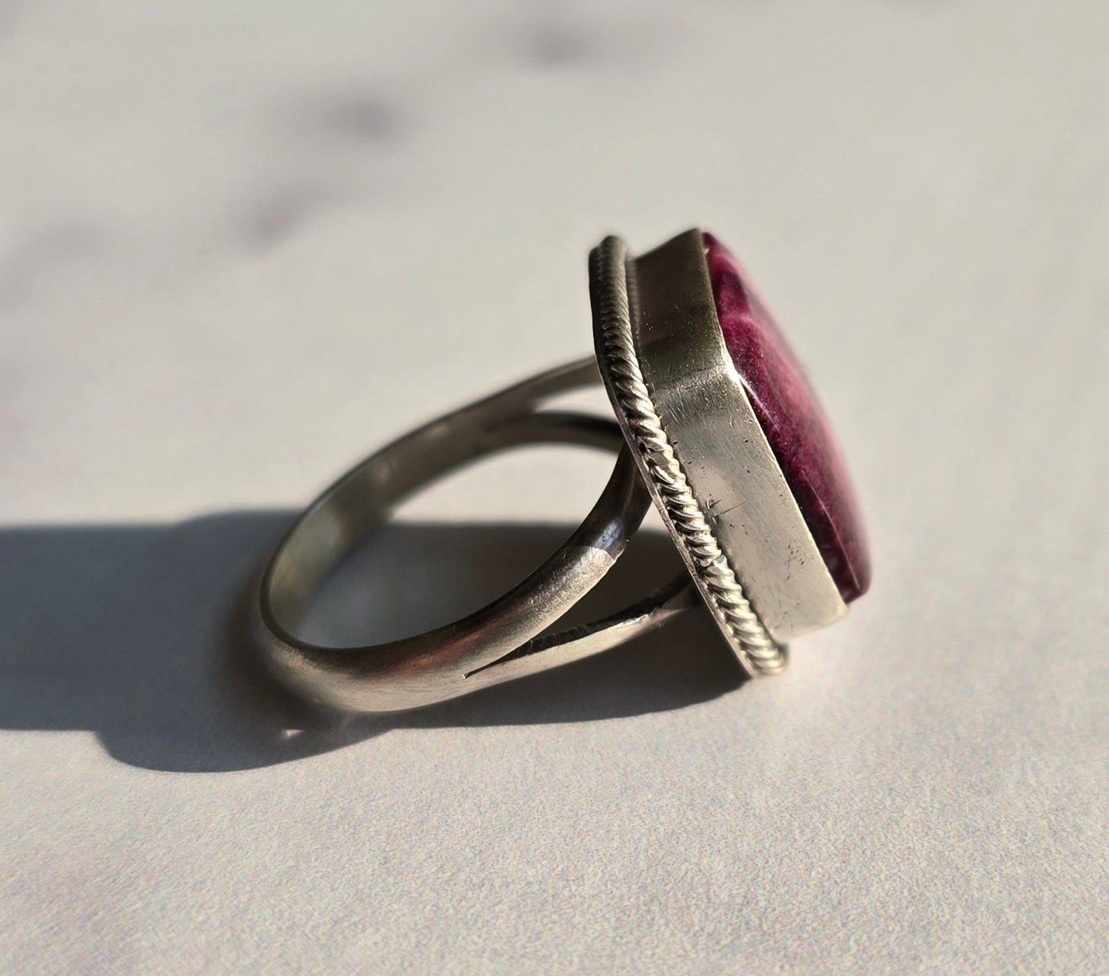 Native made, purple spiny and sterling ring. Made by Scott Skeets. Size: 9.5.