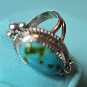 Native made, stamped sterling and signed R Sam. The band has been placed slightly crooked. Price decreased for this.