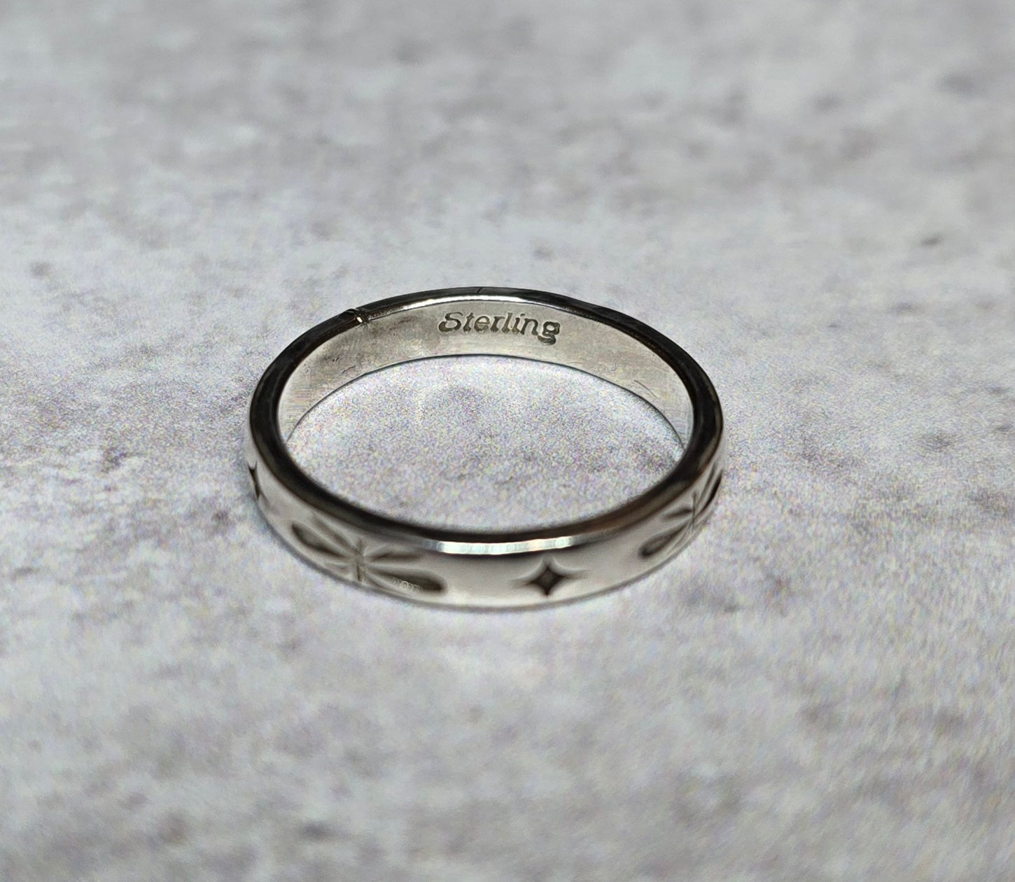 Sterling stamped stacker ring. Size 6.75. Handmade in Texas by silversmith Stephanie Fritzsching. Not native. Sterling.