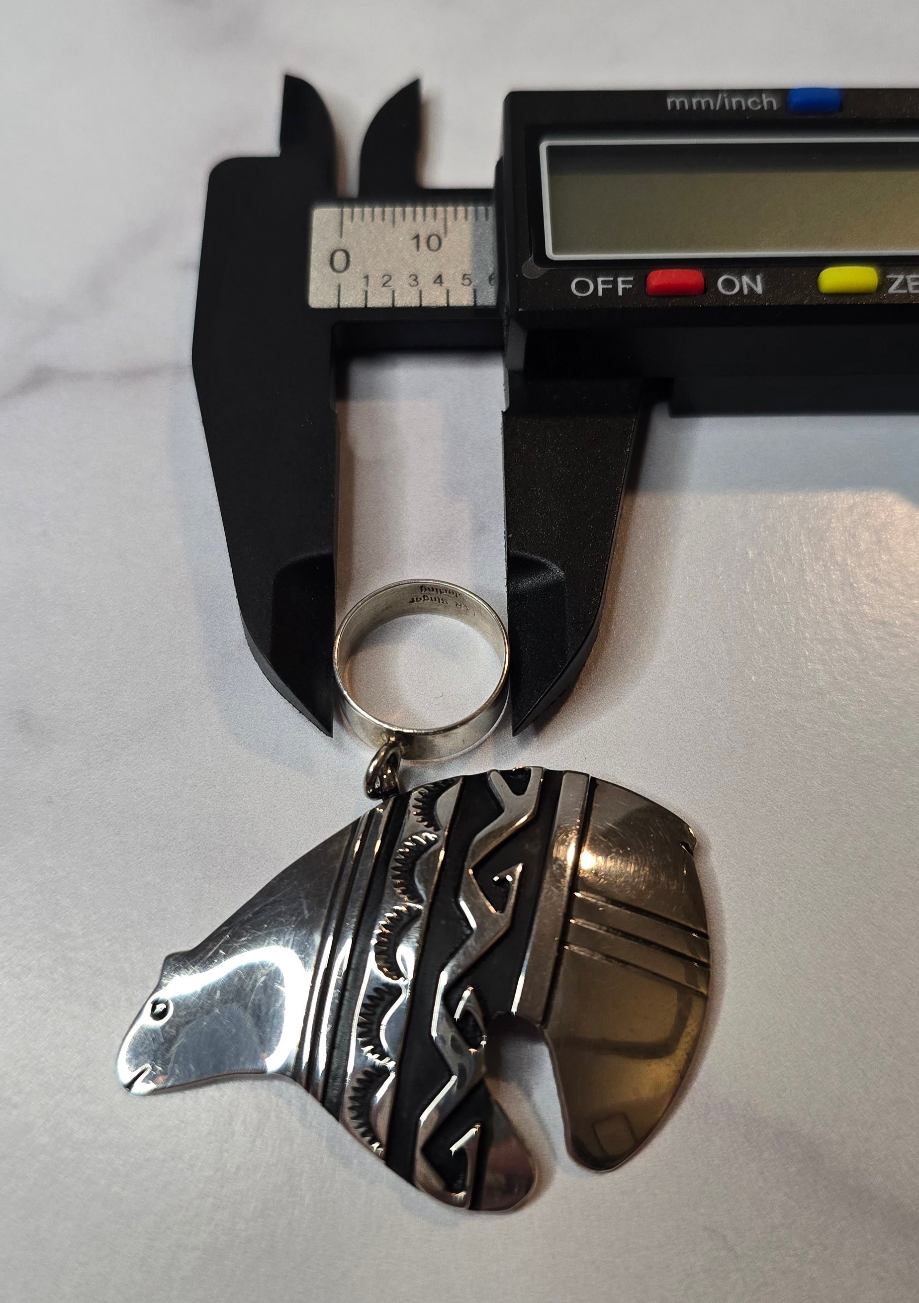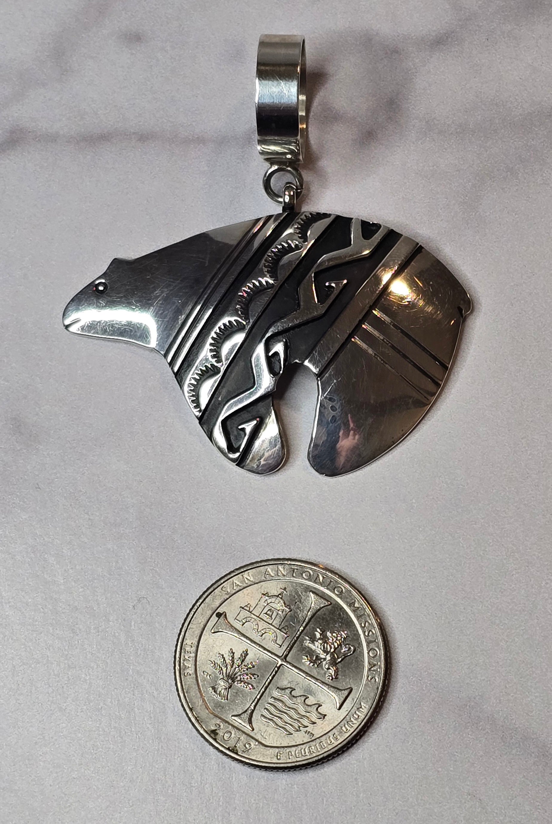 Native made, bear and sterling pendant. Large Bail. Made by T&R Singer.