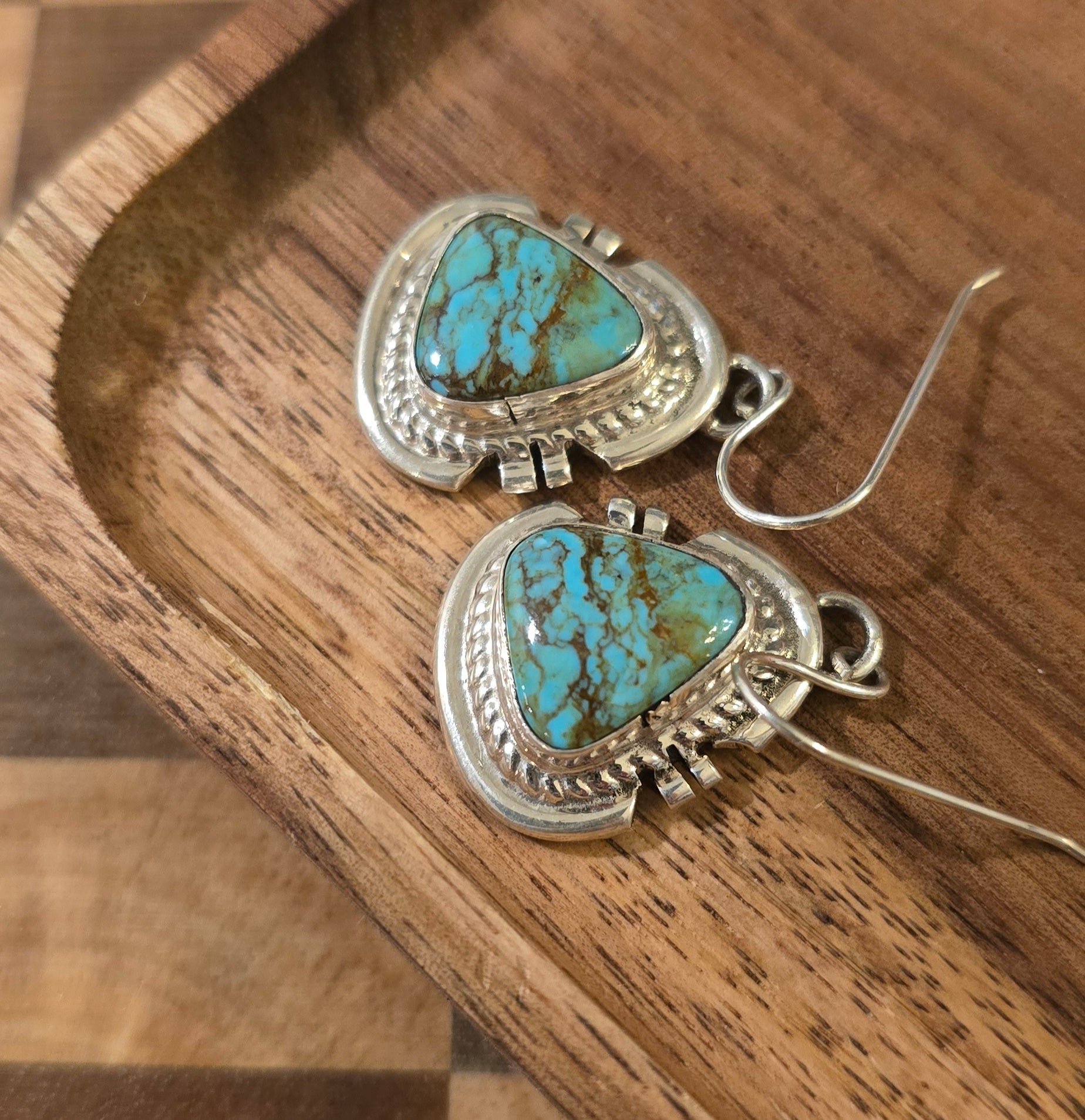Native made, turquoise and sterling earrings. Made by Chez Clayton Tsosie.