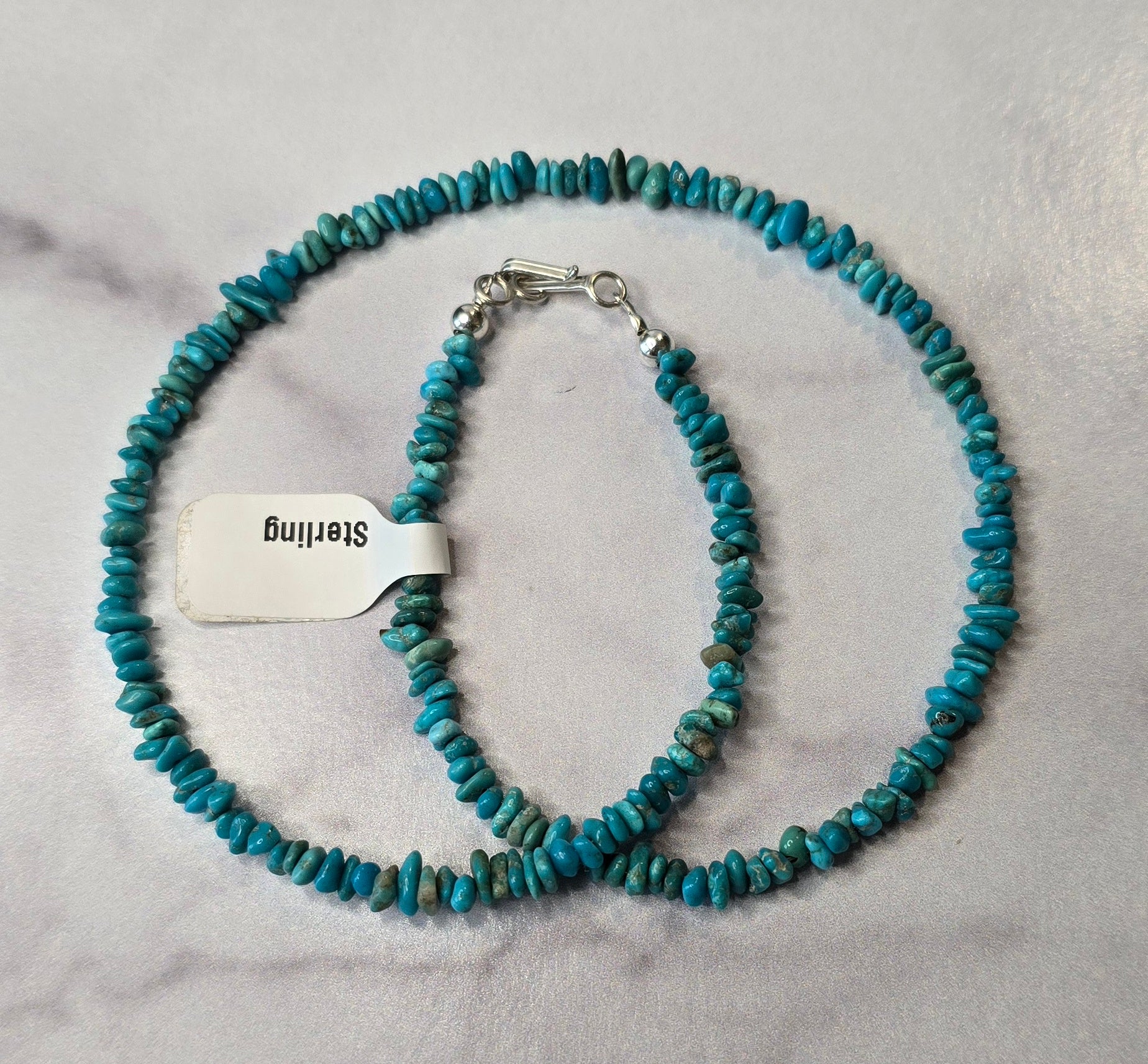Turquoise and sterling necklace. 16 inches long. Option D.
